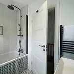 Villa comprend une salle de bains avec une baignoire et une toilette séparée. Vous pourrez également profiter de la commodité d'un sèche-cheveux et des draps de bain.